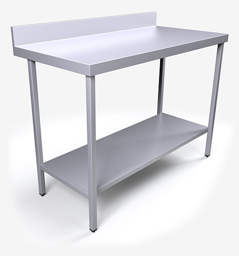 Our wall tables include a 100mm space between the wall and the back legs to allow for skirting, pipework, or any electrical trunking that may be running along the wall. Our wall table tops include a 100mm up-stand as standard.